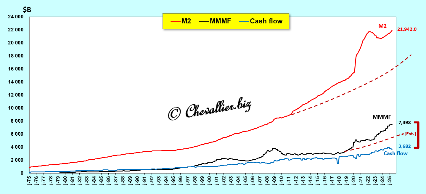 … which is confirmed by the representation of the evolution of each of these entities over the long term, with deposits in money market mutual funds also experiencing an extraordinary increase, while corporate cash flows have been declining since the beginning of 2025.