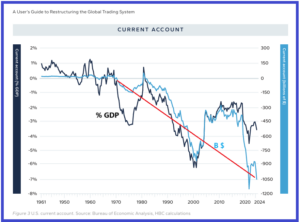 Consequently, the US trade deficit has widened over the years, according to Stephen Miran’s presentation.