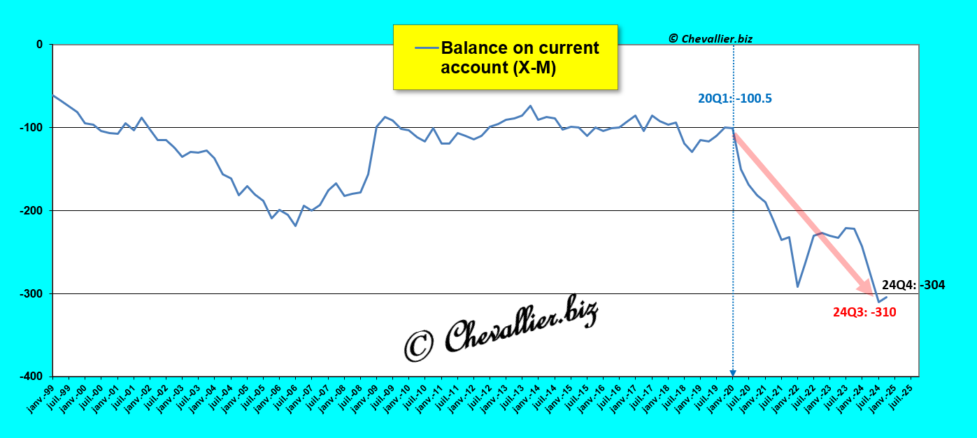 It is the current account deficit of 1,100 to 1,200 billion dollars that is the most worrying. It is three times greater than the balance of trade (in the strict sense). The causes should be examined more closely.