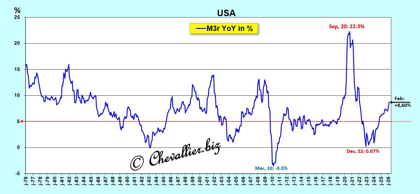 The conclusions that can be drawn from this data therefore confirm that monetary hypertrophy (always lethal in the long run) poses a serious threat to the United States at any time, especially in the event of exogenous disruptions—which is indeed the case at the start of 2026 with this war against Iran.