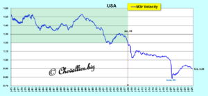 The velocity of money is the ratio of GDP to M3r, that is, the inverse of the M3/GDP ratio (as a percentage). This is not a practical concept.