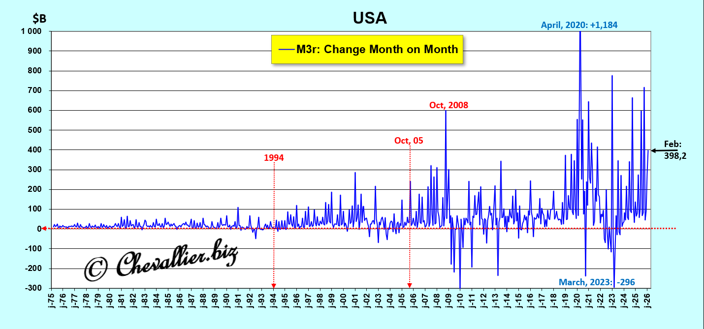 Indeed, the month-over-month increase in the M3r money supply was $398.2 billion last February, continuing an upward trend.