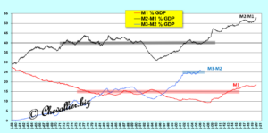 The monetary aggregate M2 consists of the sum of the M1 aggregate and the M2-M1 aggregate, which includes savings account deposits. This M2-M1/GDP ratio (as a percentage) must be less than 40% of GDP.