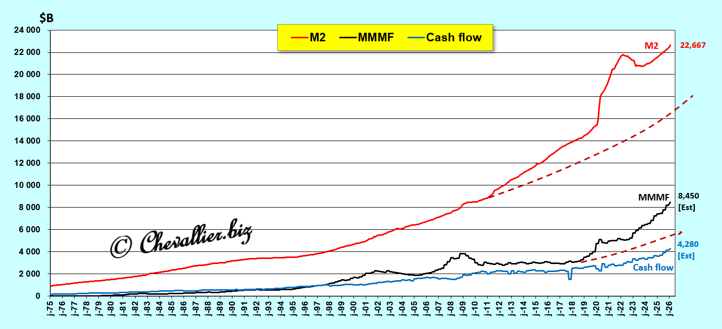 The data for the fourth quarter of 2025 for money market mutual funds (MMMF) and corporate cash holdings (CNCF) are those published by the authorities and reported by our friend Fred from Saint Louis.