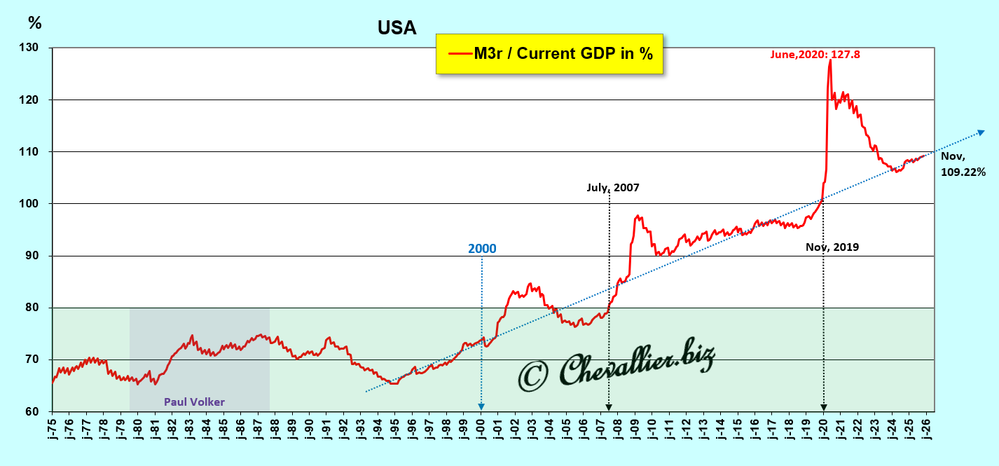 Paul Volcker and then Alan Greenspan therefore succeeded in keeping the money supply within its optimal range before 2000, i.e., during the period dominated by the Cold War, which was essential at the time to counter the threat of communism.