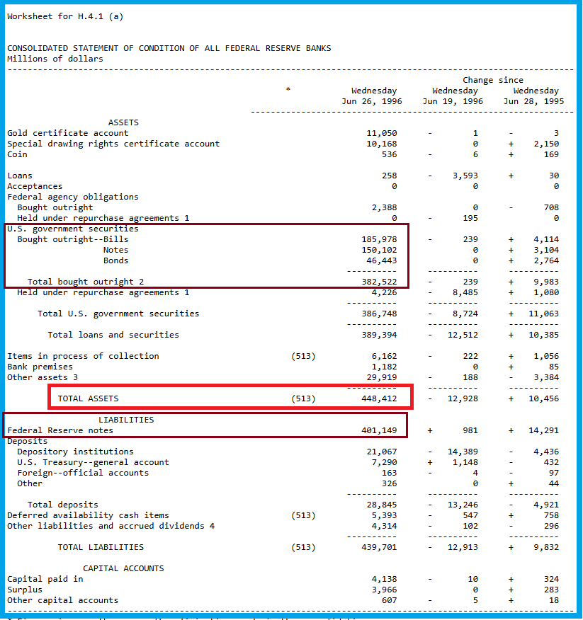 In fact, the oldest weekly Fed balance sheet still published on its website, dating from June 1996, shows only $382.5 billion in Treasury bills for total assets of $448.4 billion, which can be considered normal because Fed officials can and must be able to conduct the open market policy, they deem necessary to regulate economic activity.