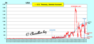 Finally, the Treasury’s cash reserves are also abnormally high. In fact, they amount to more than $900 billion, whereas before 2008 they were generally in the range of $5 to $10 billion!